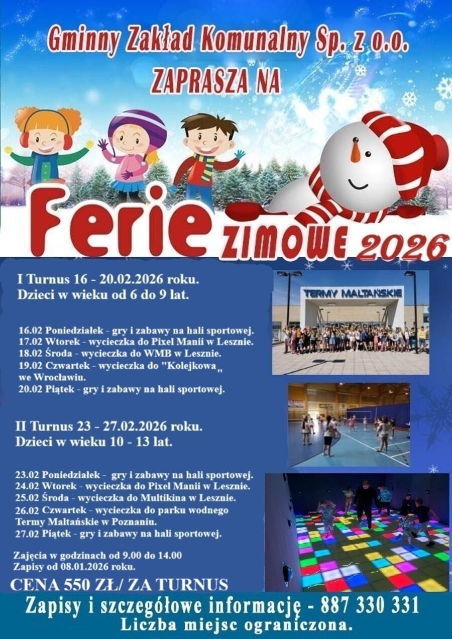 Zaproszenie na "Zimowe Półkolonie 2026" Sprawdź najnowsze wiadomości Więcej aktualności Taryfy opłat Formularze do pobrania Hala sportowa Dane kontaktowe